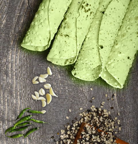 Add a spicy twist to tradition with our Hand-Rolled Urad Papad, enriched with the natural heat of fresh green chilies and the bold aroma of crushed garlic, blended into a flavorful homemade masala mix. This papad is a perfect combination of spice, flavor, and purity — just like homemade!